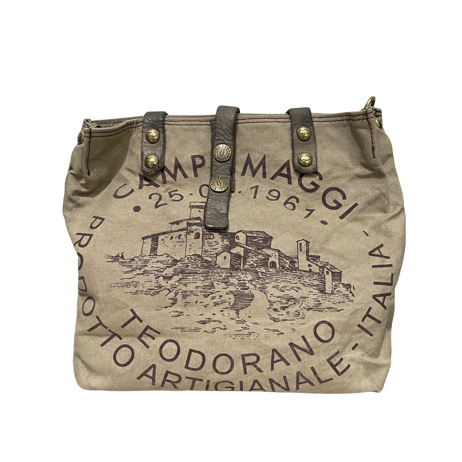 Campomaggi Canvas Tote Bag in Beige and Cemento