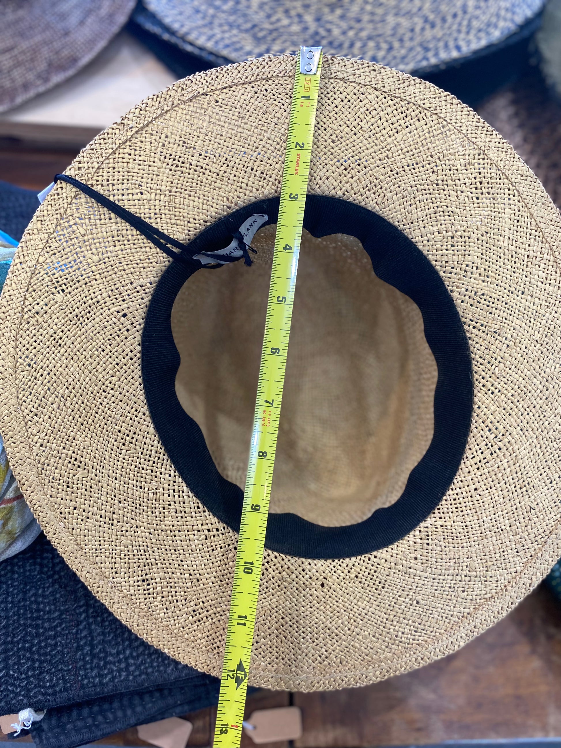 Medium-brimmed hat with handsewn straw directly on hat form.
